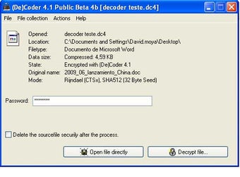 O processo de segurança do (De)Coder remove o arquivo original e o substitui por outro acessível mediante a sua senha. Sem utilizar a senha correta é impossível consultar alguma coisa.